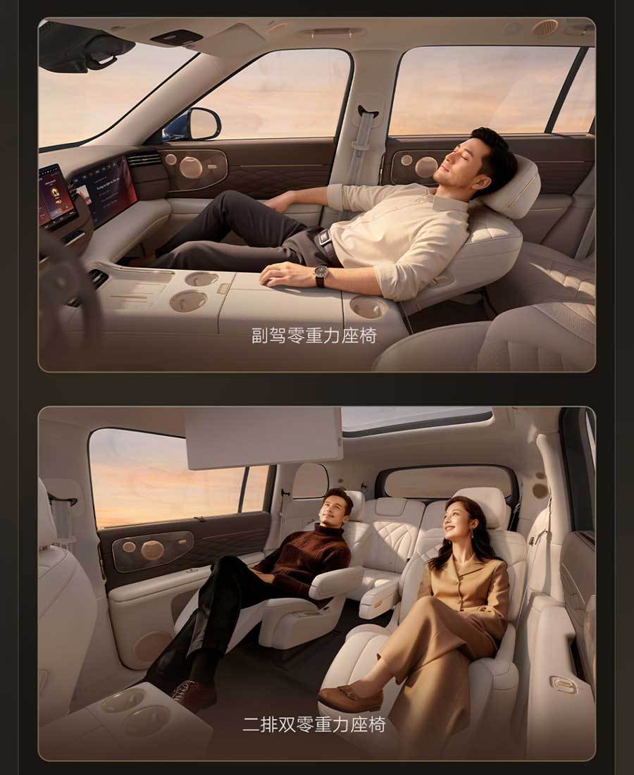 智己LS9的产品设计体现了品牌对高端SUV的深刻理解,外观上延续简约未来主义风格,长约5.3米的车身以硬朗线条和隐藏式门把手营造出大气动感。内饰聚焦六座布局,针对家庭用户优化了空间:前排高视野设计(眼点1.6米),后排零重力座椅配备4D机械按摩,模拟专业手法缓解长途疲劳。此外,B&O顶级音响、21.5英寸4K娱乐屏和12.3L双开门冰箱,将车内转化为“移动生活空间”,这些配置并非简单堆砌,而是注重沉浸式体验。