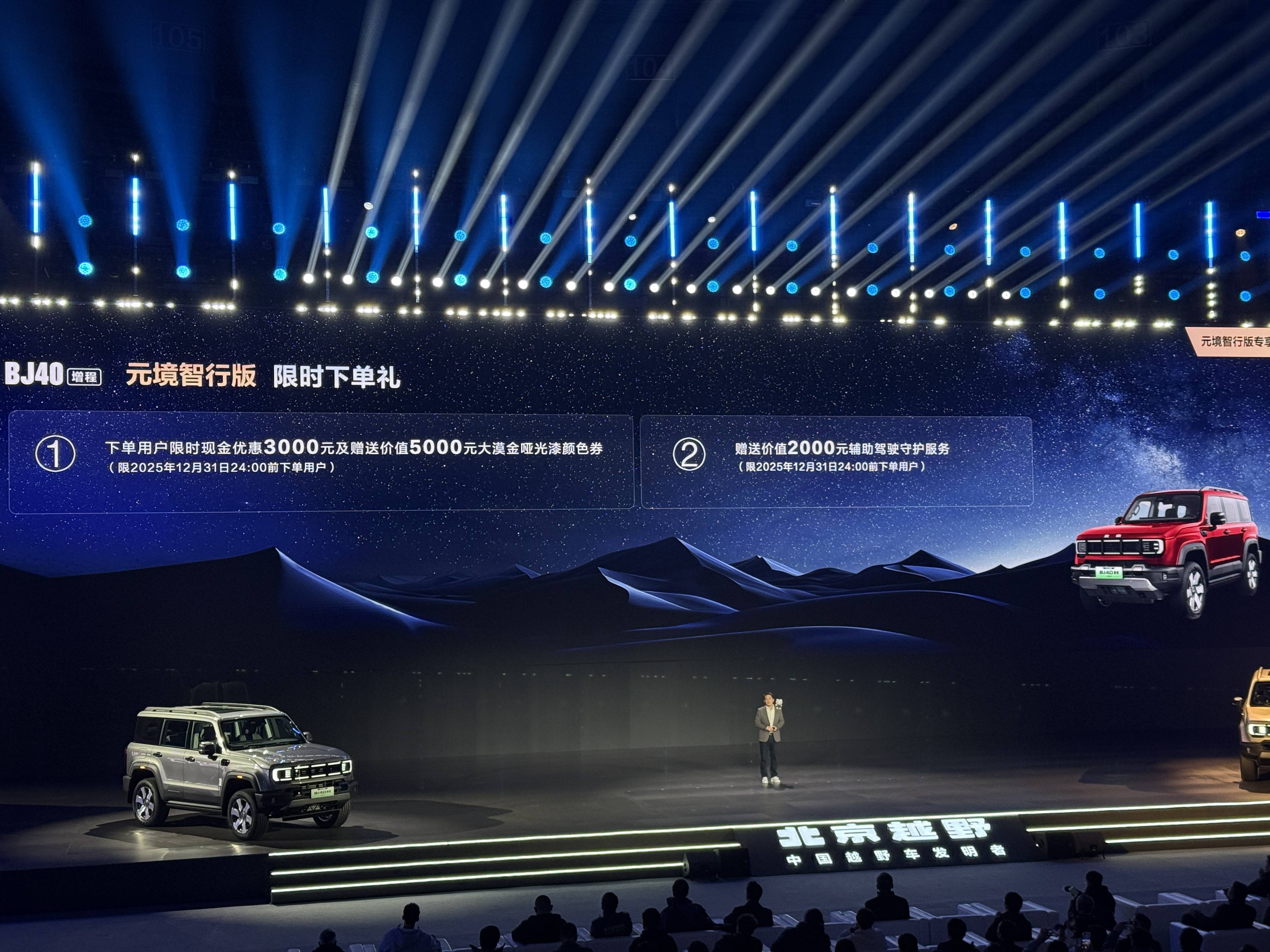 2025年11月13日,北京越野BJ40增程元境智行版正式上市,官方指导价20.48万元,限时焕新价19.48万元,12月31日前下订还有限时优惠3000元等权益。