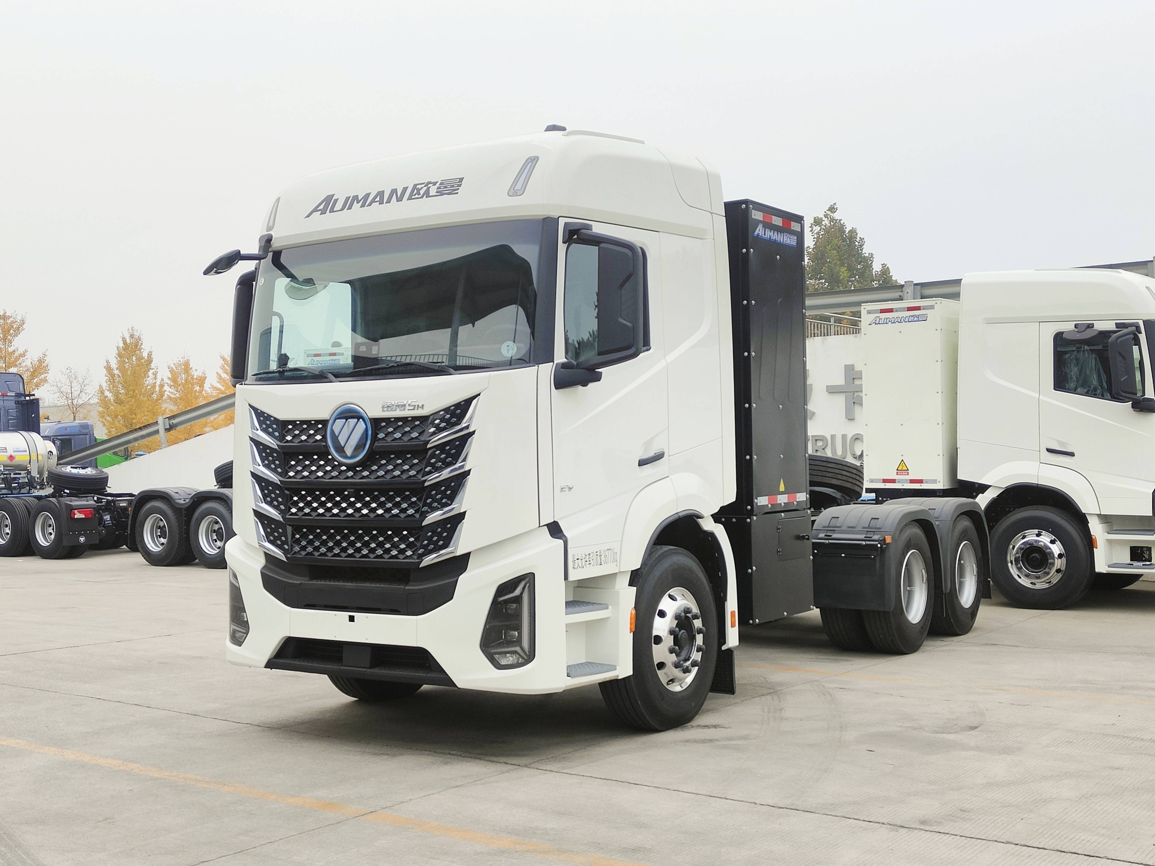 从外观来看,欧曼银河5M新能源牵引车延续了家族设计语言,经典的机甲前脸,与集成了多重功能的星眸大灯组成极具冲击力的前脸,整体造型既有力量感又美观大方。此外,超大弧面玻璃则像给车辆装上了 “广角视野”,让司机在矿区狭窄路段或复杂路口能提前预判风险。