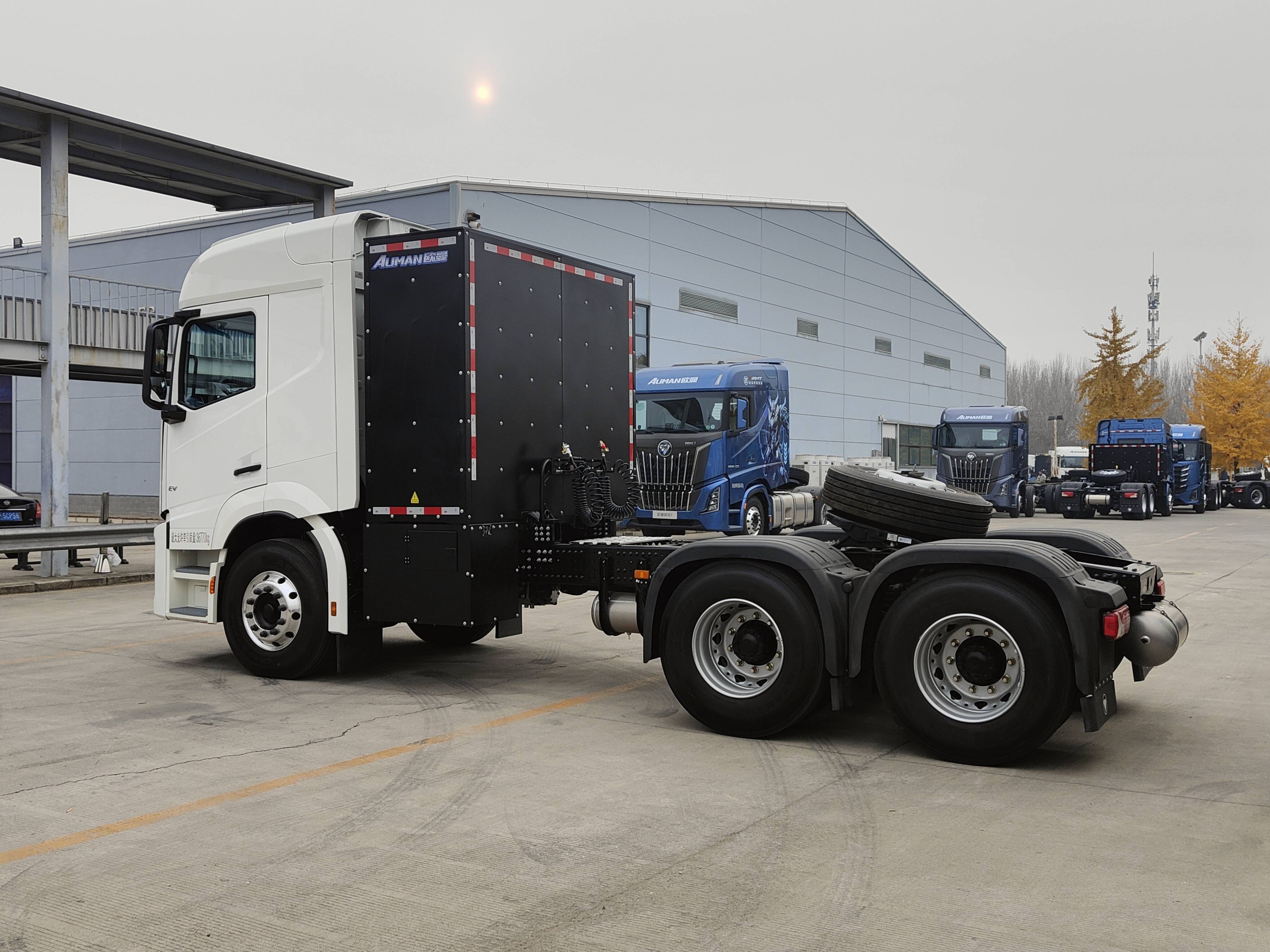 三电方面,欧曼银河5M新能源牵引车采用中央电驱设计,系统高度集成化,零部件数量减少,结构更简单,潜在故障点更少,可靠性更高,可以降低运营与维护成本。电池方面,欧曼银河5M新能源牵引车除了600度电产品,还可提供400度电、466度电、528度电等全电量矩阵产品,卡友可以根据场景选择最经济的方案。然后电池布置,该车提供后背、底置两种布置方式,体验车型采用了底置电池设计,底置的好处是整车重心更低更稳,安全性也更好。