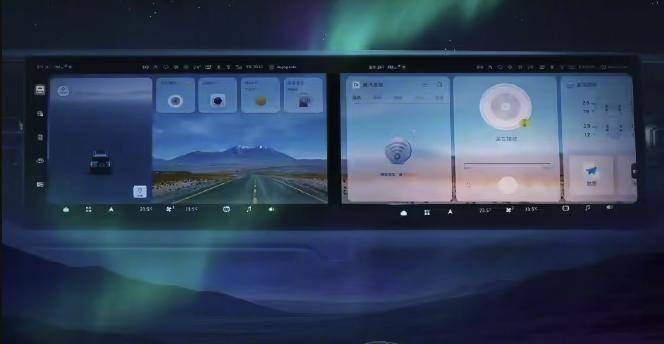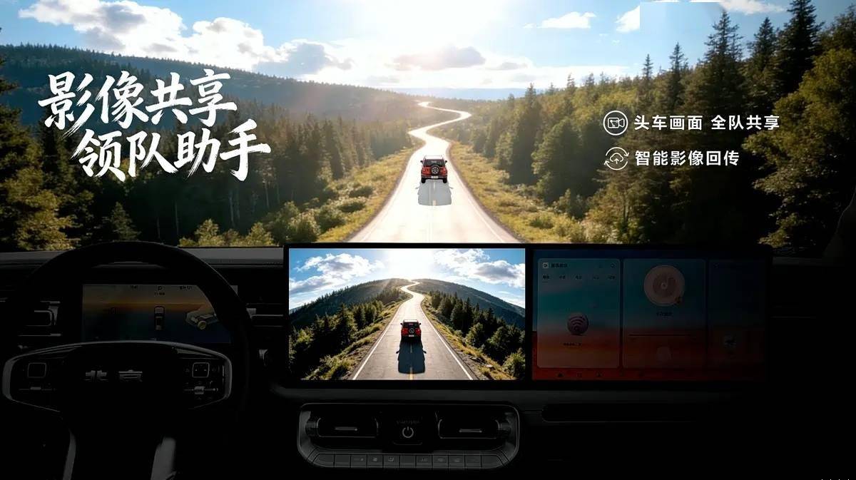 作为新增车型,燃油巨幕版外观延续在售车型设计,采用黑色门把手、行李架及轮眉,搭配外挂式备胎。核心升级在于内饰智能化,配备双 15.6 英寸悬浮双联屏,并换装第二代 8155 车机芯片。