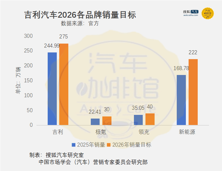 吉利汽车2026各品牌销量目标 图源:搜狐汽车